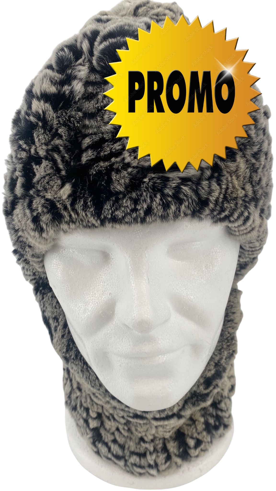 Cagoule en Lapin Rex Gris Chiné Taille Unique