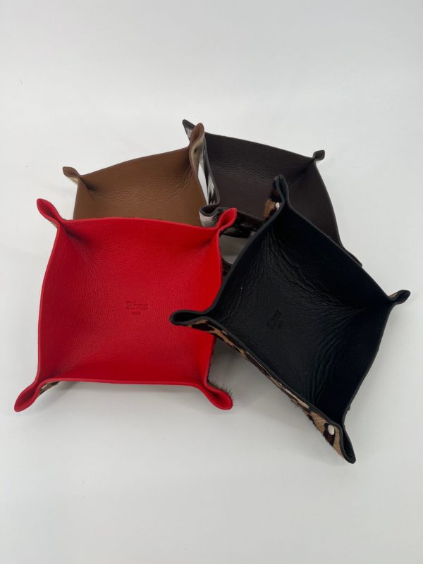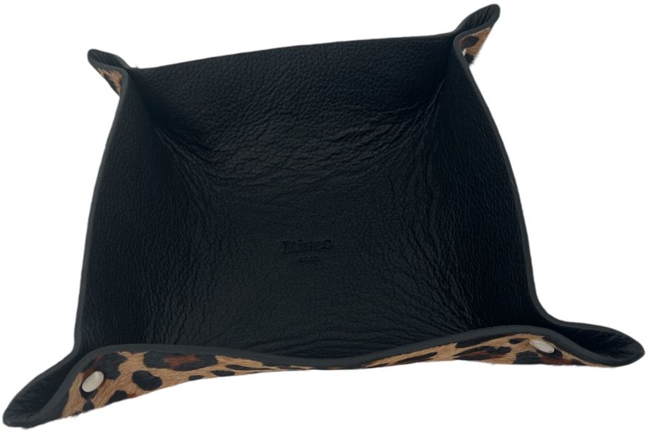 Vide-Poche cousu main en peau de vache naturelle imprimée Léopard.